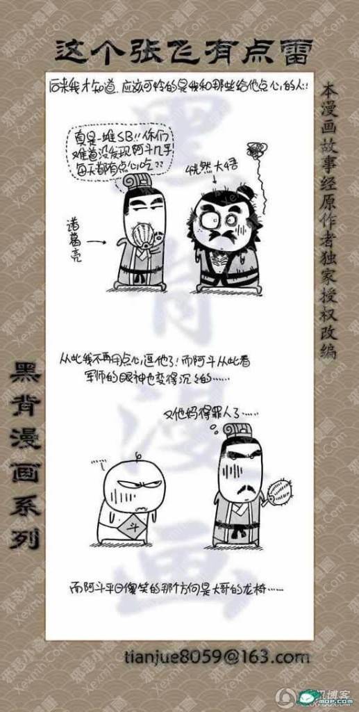 猛张飞看似粗犷,但心思也是非常细密的!刘关张好基友,腹黑的孔明,娘炮的子龙,龌龊的魏延,原来三国也是可以如此可爱的。